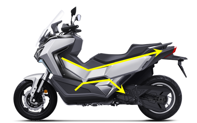 The ADXTG is applied the technology derived from the MAXSYM TL’s single-sided multilink system. SYM have made it for those who eager to ride a maxi scooter that has centralized monoshock suspension system. Followed the engineering goal, the SANYANG multilink suspension is enabled to bring not only comfort but also sport feedback no matter on-road or off-road.