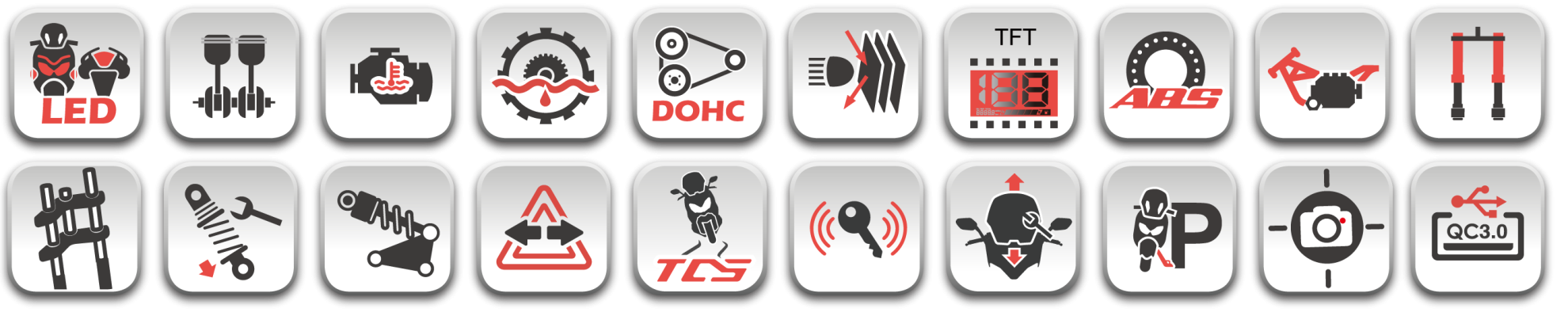 - In-line twin cylinder engine with reverse balance cylinder and multi-disc automatic wet clutch effectively reduces the engine vibration at high speeds, delivering vibration-free power to the rear wheel since start up.